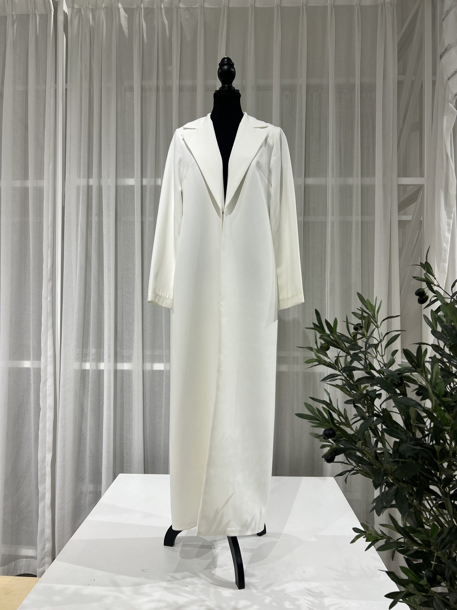 Beautifully tailored White and Mint Green Coat-Style Abaya available at Barg, designed to bring effortless sophistication to the workplace. Made from soft, breathable fabric, it combines comfort with structure for a polished, professional look.